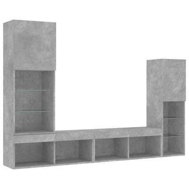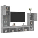 Unités murales TV avec LED 4 pcs gris béton bois d'ingénierie