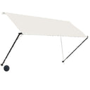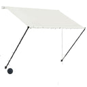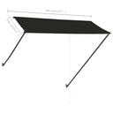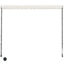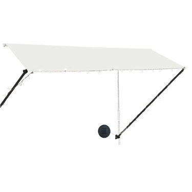Cet auvent rétractable sera sûrement une option idéale pour une utilisation devant la fenêtre, sur la terrasse, sur le balcon ou dans votre jardin. Cet auvent résistant à l'eau, aux UV et aux intempéries est fait d'un tissu de qualité avec un revêtement en PA. De plus, le cadre en acier fort rend l'auvent robuste et durable. L'auvent en polyester facile à nettoyer peut être retiré et lavé. Ce produit peut non seulement être utilisé comme auvent ordinaire, mais aussi couvrir complètement la fenêtre. Grâce à la barre de support et à la chaîne, ce store est rétractable. La hauteur et l'angle du store peuvent également être ajustés pour maximiser l'ombre. De plus, les lumières LED à énergie solaire fournissent un éclairage économe en énergie la nuit. Le produit est facile à assembler. Ce produit doit être installé sur des surfaces lisses et planes.