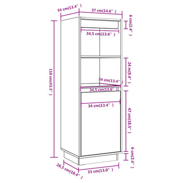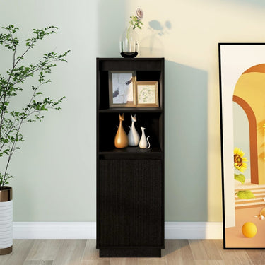 Buffet haut Noir 37x34x110 cm Bois massif de pin