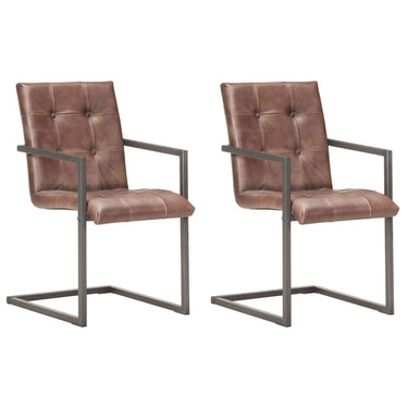 Chaises à manger cantilever lot de 2 marron cuir véritable