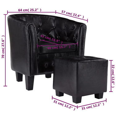 Chaise cabriolet avec repose-pied Noir Similicuir