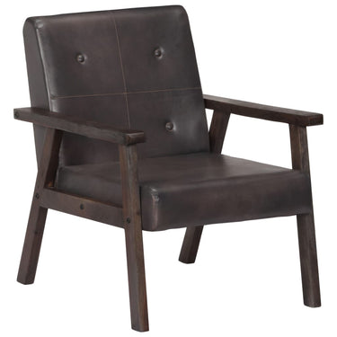 Notre fauteuil en cuir véritable sera un excellent complément à la décoration de votre salon, bureau ou chambre à coucher. Le fauteuil est fait de cuir véritable facile à nettoyer et décoré de boutons, ce qui ajoute une touche de luxe à tout intérieur. Son siège et son dossier bien rembourrés assurent un confort d'assise optimal. De plus, le cadre en bois d'acacia solide améliore la stabilité et la durabilité du fauteuil. C'est l'endroit idéal pour regarder un film, lire un livre ou tout simplement vous détendre ! Ce fauteuil est facile à assembler.