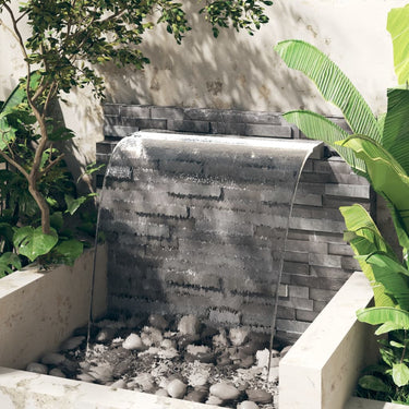 Cette lame d'eau permettra de décorer votre piscine ou votre bassin. Les sons relaxants provenant de la chute d'eau vous offriront un sentiment de calme et de bien-être. Elle est spécifiquement conçue pour garantir un débit d'eau constant. Fabriquée en acier inoxydable de haute qualité et résistante à l'eau chlorée, elle est très durable. Elle dispose d'une éclairage à LED et la fiche sont incluse dans la livraison. L'assemblage est très facile. Achetez-la maintenant et profitez du son et de la vue apaisants de l'eau qui tombe ! Veuillez noter qu'une pompe n'est pas incluse.