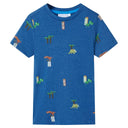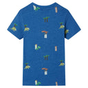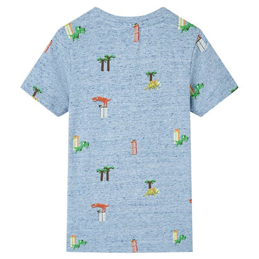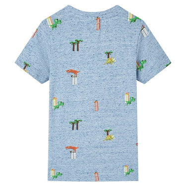Cette chemise enfant possède des manches courtes, une encolure ronde et un modèle droit. Ce T-shirt présente un motif de dinosaures, de bâtiments et d'arbres. La chemise pour enfants à manches courtes est composée à 100 % de coton, ce qui la rend douce et confortable.
