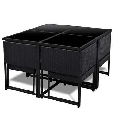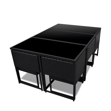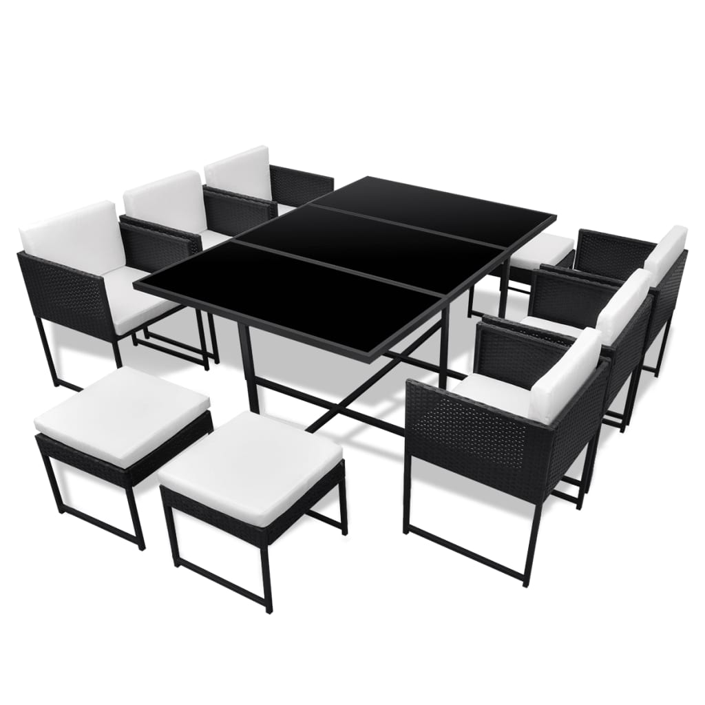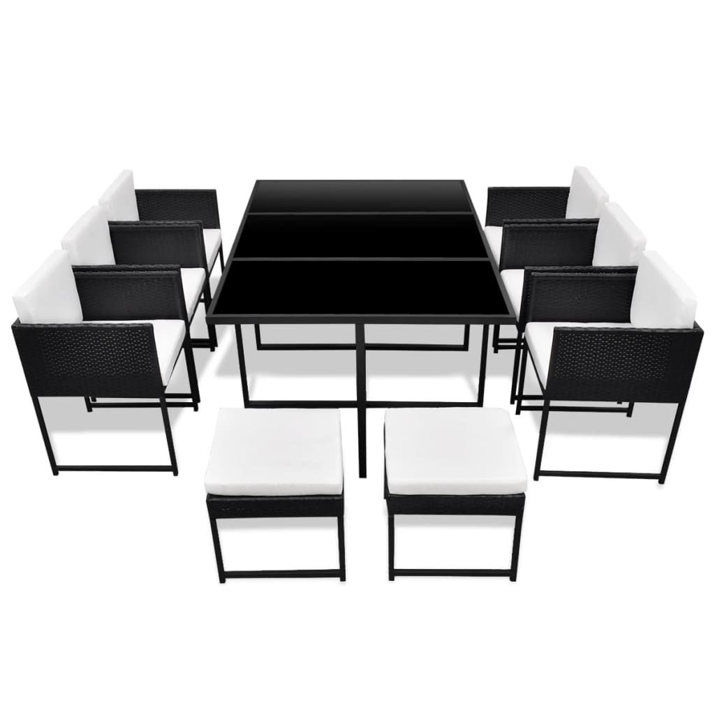 Salon de jardin 9 pièces avec coussins poly rotin noir