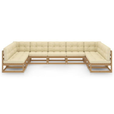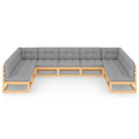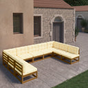 Salon de jardin 9 pcs avec coussins Marron miel Bois de pin