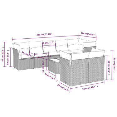 Salon de jardin avec coussins 9 pcs beige résine tressée