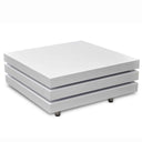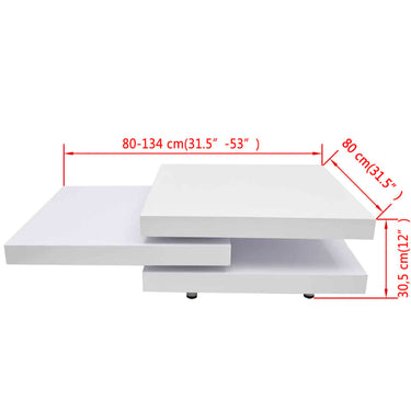 Cette table basse à haute brillance crée un impact visuel instantané à votre intérieur de salon avec ses lignes épurées. Elle peut être utilisée comme table basse pour une surface pratique pour poser votre boisson ou toute autre nécessité dont vous avez besoin à portée de main. Design peu encombrant : la table basse comporte deux niveaux extensibles sur une base stationnaire. Vous pouvez faire glisser les niveaux pour révéler plus d'espace ou les replier quand vous n'en avez pas besoin. C'est une combinaison parfaite de praticité et de style.Cadre robuste : la table est fabriquée en panneaux de fibres à densité moyenne (MDF). Elle est recouverte d'une laque durable à haute brillance et est soutenue par des pattes en métal chromé. Facile à entretenir et à assembler : c'est seulement un chiffon doux et humide est nécessaire pour l'entretien ! L'assemblage est assez facile.