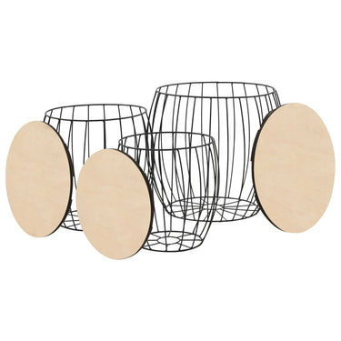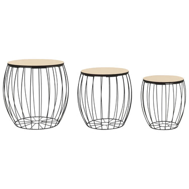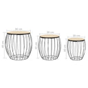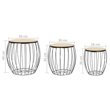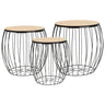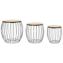 Cet ensemble de 3 tables basses exsude un charme vintage et sera un supplément remarquable à votre décoration intérieure. Elles peuvent être utilisées également comme paniers de rangement, tables de canapé et tables d'appoint, etc. Le dessus de table en bois massif offre une surface stable sur laquelle vous pouvez poser des boissons, des vases ou d'autres objets de décoration. En retirant le dessus de table, il est possible de transformer la table d'appoint en panier de rangement. De plus, la petite table peut être rangée dans la plus grande pour gagner d'espace. La solide base en fer enduit de poudre contribue à leur construction robuste ainsi qu'à leur aspect industriel.