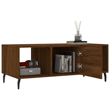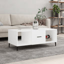 Ajoutez une touche d'élégance à votre salon avec cette élégante table basse. Matériau durable : le bois d'ingénierie est d'une qualité exceptionnelle avec une surface lisse et présente également résistance, stabilité et résistance à l'humidité.Grand espace de rangement : cette table d'appoint dispose de 3 compartiments, offrant un grand espace de rangement pour garder vos essentiels bien organisés et à portée de main.Dessus de table robuste : le dessus du bout de table robuste est parfait pour placer vos boissons, aliments et autres objets décoratifs.Porte pratique : gardez votre espace sans encombrement en cachant de petits objets essentiels derrière la porte de la table de salon.Pieds en fer : les pieds en fer ajoutent un style calme à votre intérieur tout en assurant sa stabilité.