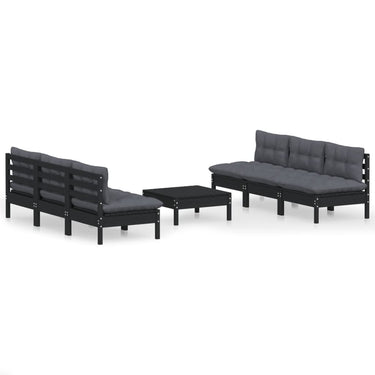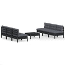 Salon de jardin 7 pcs avec coussins gris bois de pin