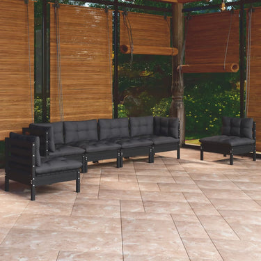 Salon de jardin 7 pcs avec coussins bois de pin massif