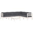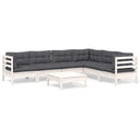 Salon de jardin 7 pcs avec coussins blanc bois de pin massif