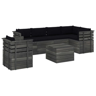 7-delige Loungeset met kussens pallet massief grenenhout