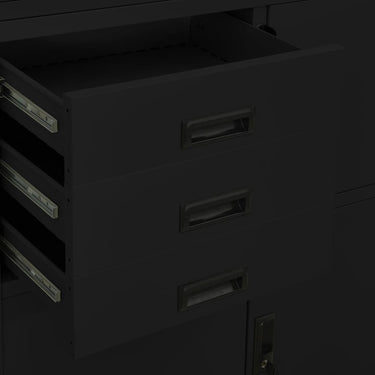 Cette armoire de bureau, avec un design de meuble de classement typique, est idéale pour le stockage de fichiers. Cette armoire de bureau est en acier, ce qui la rend durable et facile à nettoyer. Avec un casier à l'intérieur et 3 étagères réglables, ce classeur vous permet de trier soigneusement vos fichiers en différentes catégories et de les garder en sécurité. Les tiroirs avec des glissières à billes en 3 sections assurent une ouverture et une fermeture en douceur, même sous une charge accrue. Cette armoire s'adaptera à n'importe quel décor de bureau grâce à son design emblématique.