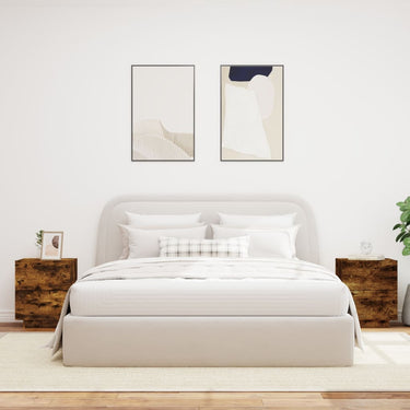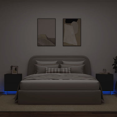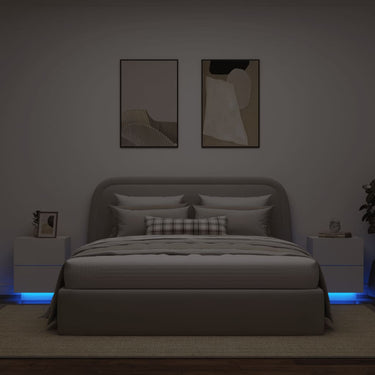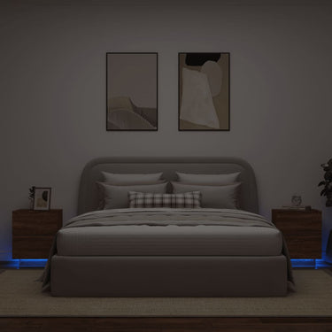 Armoire de chevet et lumières LED gris béton bois d'ingénierie