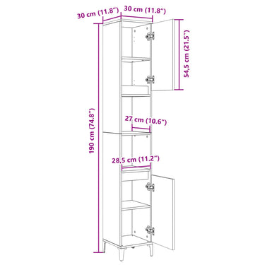 Armoire salle de bain chêne sonoma 30x30x190 cm