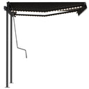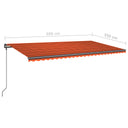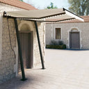Créez un endroit agréable et frais sur votre terrasse et protégez-vous des rayons UV avec cet auvent rétractable automatique ! Cet auvent d'extérieur, construit avec un cadre en aluminium enduit de poudre résistant à la rouille, est léger mais robuste. Le poteau en fer fort le rend stable. Le tissu de l'auvent de terrasse est en polyester haute densité avec revêtement de PU, résistant à l'eau et aux UV. L'angle et la hauteur peuvent être ajustés pour répondre à vos besoins spécifiques. Vous pouvez facilement ouvrir et rétracter l'auvent rétractable automatique avec la télécommande incluse. De plus, la longue manivelle peut contrôler l'auvent en douceur. Il est également équipé d'un capteur de vent qui peut fermer votre auvent automatiquement les jours venteux. De plus, les lumières LED fournissent un éclairage économe en énergie la nuit.