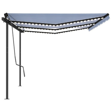 Auvent automatique capteur de vent/LED 6x3 m Bleu et blanc