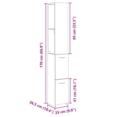 Badkamerkast 25x26,5x170 cm bewerkt hout sonoma eikenkleurig