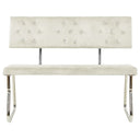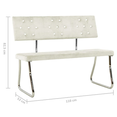Ce banc allie style et confort et est un complément parfait à votre décoration intérieure. Le banc d'entrée est orné de cristal et recouvert de velours doux, offrant un confort et une expérience d'assise optimaux. Le cadre en métal chromé ajoute également de la durabilité et de la stabilité.