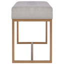 Notre banquette en velours sera un excellent supplément à votre salon ou entrée. La tapisserie d'ameublement en velours de couleur moutarde est douce au toucher et très confortable, donnant une touche de couleur à votre intérieur. De plus, les pieds en fer enduit de poudre ajoutent de la stabilité et de la durabilité au banc d’entrée. Notre banc de couloir décorera avec élégance votre espace de vie et sera une partie indispensable de votre pièce. Le banc en velours est facile à assembler.