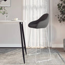 Avec un design contemporain, ces tabourets de bar en velours tendance sont conçus pour être un supplément pratique à votre espace de vie. Matériau de qualité : le velours est un tissu doux et luxueux qui se reconnaît à son tas dense de fibres uniformément coupées qui ont une touche lisse. Le tissu en velours présente un toucher doux distinctif, ce qui le rend confortable au toucher.Structure élégante et robuste : le tabouret est doté de pieds en métal chromé, qui ajoutent un style moderne et calme à votre intérieur tout en assurant sa stabilité.Confort supplémentaire : le dossier et le siège rembourrés du tabouret de bar, ainsi que le repose-pied et les accoudoirs, assurent un confort d'assise optimal.