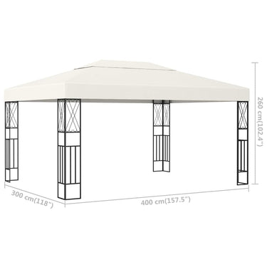 Cette tonnelle spacieuse sera un accessoire élégant à votre espace de vie extérieur tout en gardant votre famille et vos invités frais et ombragés les jours ensoleillés. L'auvent empêchera le soleil et la pluie de gâcher le plaisir lors des réunions de famille, des barbecues, des pique-niques l'après-midi et des fêtes d'anniversaire. Le belvédère a une construction en acier robuste avec des détails en forme de croix décoratifs et un toit en polyester. L'auvent peut être facilement fixé au cadre en acier. REMARQUE : ce produit ne doit JAMAIS être utilisé par mauvais temps, tel que vent fort, pluie abondante, neige, tempête, etc.