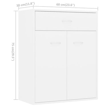 Avec un charme minimaliste, ce buffet satisfera vos différentes exigences et sera un complément idéal dans votre pièce. Matériau haute de gamme : le bois d'ingénierie est d'une qualité exceptionnelle avec une surface lisse et présente également résistance, stabilité et résistance à l'humidité.Grand espace de rangement : dotée de 2 portes et d'un tiroir, l'armoire latérale offre un espace de rangement suffisant pour garder vos divers articles bien organisés et à portée de main.Fonction d'affichage : le dessus robuste est parfait pour exposer des objets décoratifs, des cadres photo et des plantes en pot. Attention :Afin d'éviter qu'il ne bascule, ce produit doit être utilisé avec le dispositif de fixation murale fourni. Remarque :Chaque produit est livré avec un manuel de montage dans la boîte pour un montage facile.