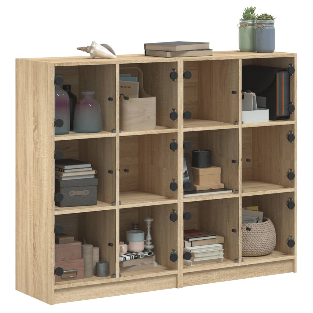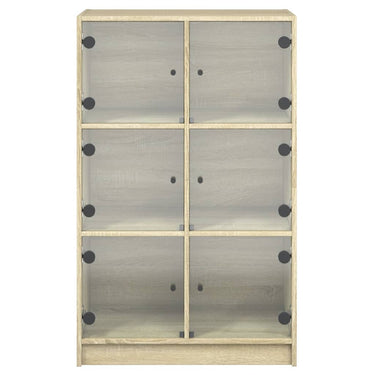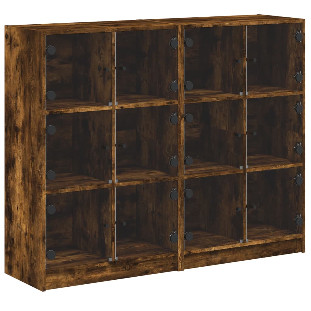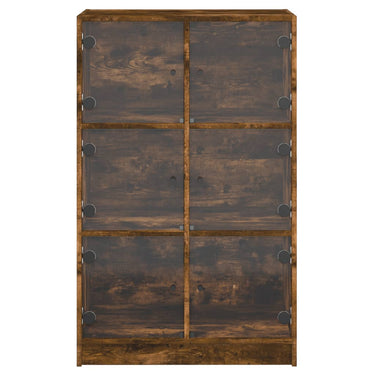 Buffet haut avec portes chêne fumé 68x37x109 cm bois ingénierie