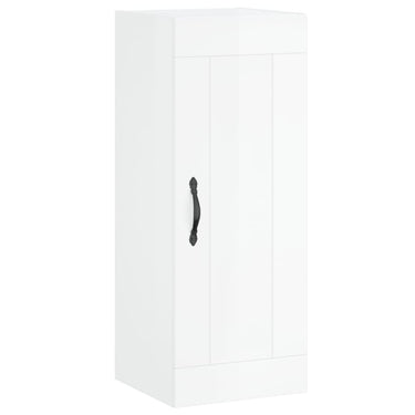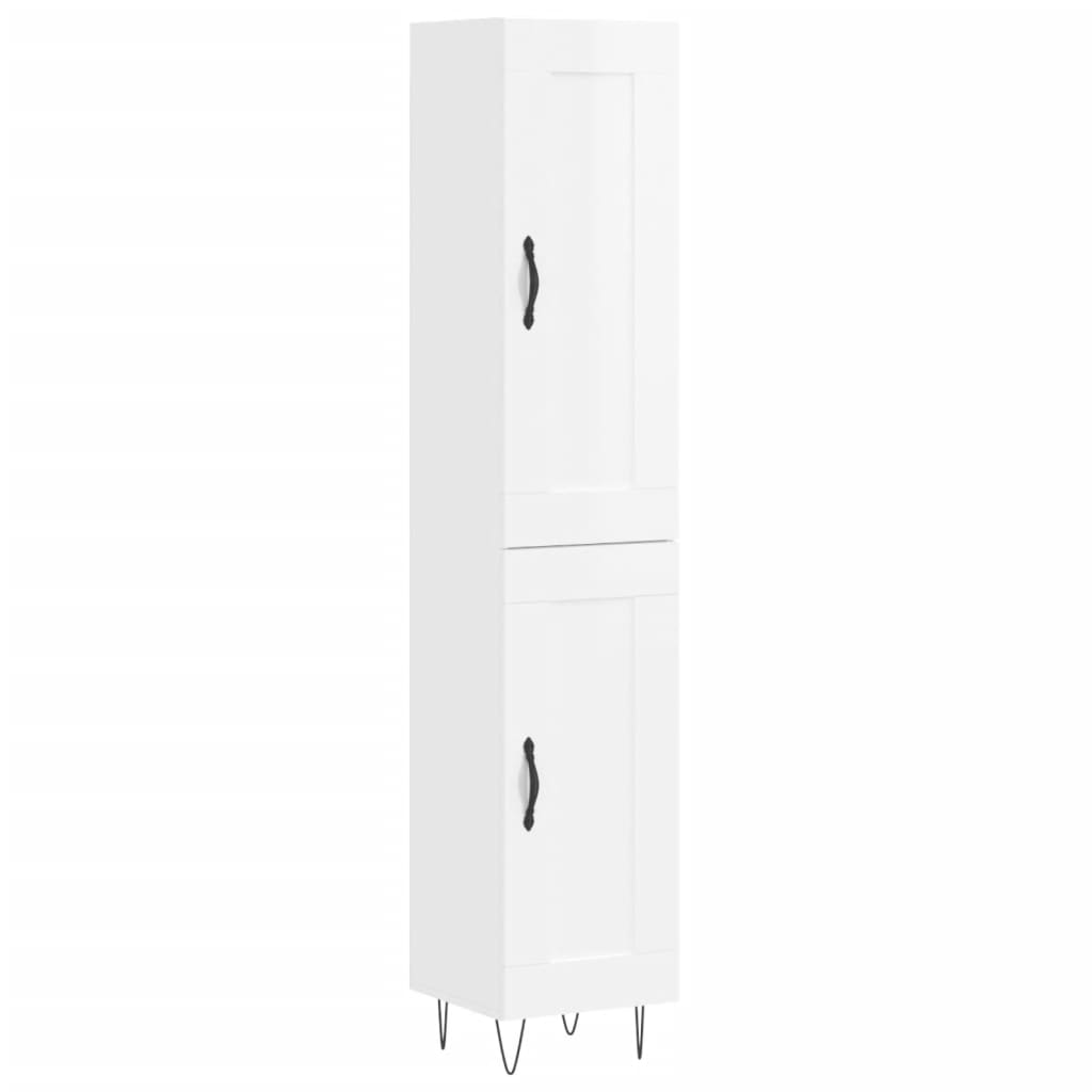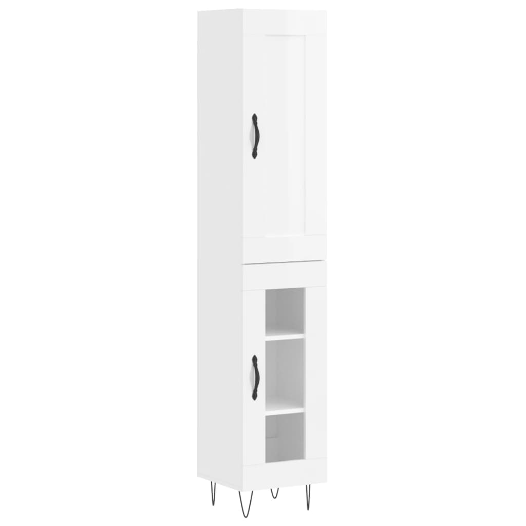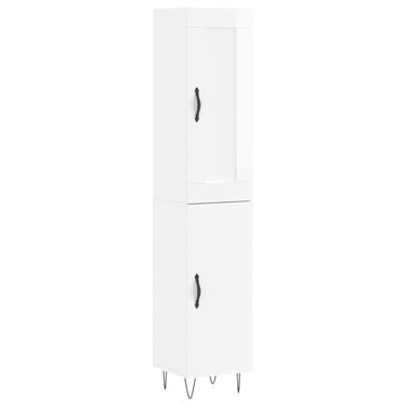 Buffet haut Blanc brillant 34,5x34x180 cm Bois d'ingénierie