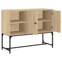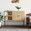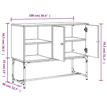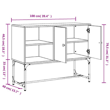 Ce buffet industriel, au look intemporel, est conçu pour être un excellent supplément à votre maison. Matériau durable : le bois d'ingénierie est d'une qualité exceptionnelle avec une surface lisse et présente également résistance, stabilité et résistance à l'humidité.Grand espace de rangement : l'armoire de rangement est dotée de 4 compartiments, offrant un grand espace de rangement pour garder vos différents articles essentiels quotidiens bien organisés et facilement accessibles.Dessus de table stable et robuste : le dessus du buffet est parfait pour afficher vos objets décoratifs préférés, cadres photo et plantes en pot.Portes pratiques : gardez vos essentiels à l'abri de la poussière en les cachant derrière les portes. De plus, les poignées des portes permettent d'ouvrir facilement le buffet.Pieds en métal : les pieds en métal ajoutent un style moderne et calme à votre intérieur tout en assurant la stabilité. Attention :Pour éviter qu'il ne soit renversé, ce produit doit être utilisé avec le dispositif de fixation au mur fourni.