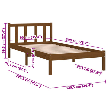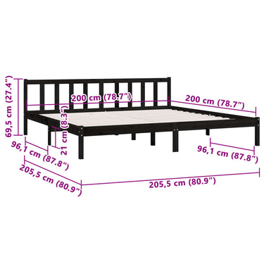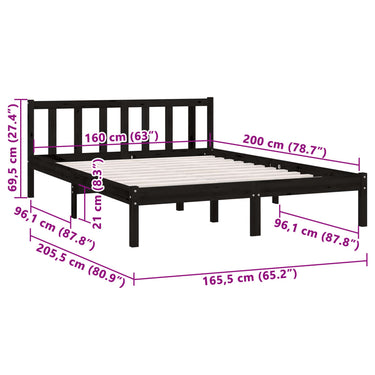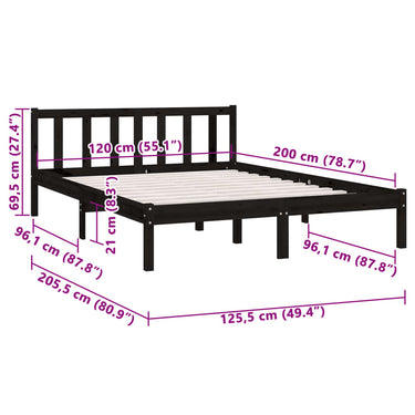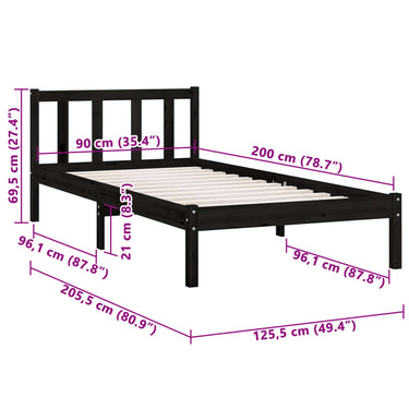 Cadre de lit sans matelas noir bois massif 90x200 cm