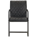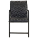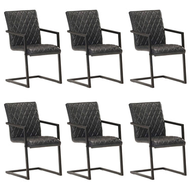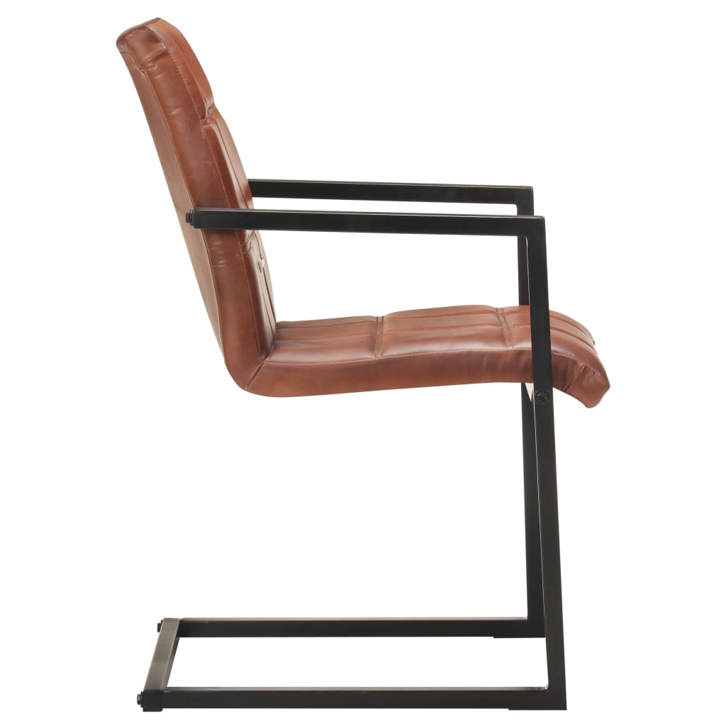 Ces chaises de salle à manger cantilever avec leur design rétro et au motif de blocs conviendront à toute cuisine ou salle à manger. Grâce à l'assise et au dossier bien rembourrés, ces chaises en cuir véritable sont très confortables et faciles à nettoyer. Les cadres en fer enduit de poudre robuste les rendent résistantes et durables.