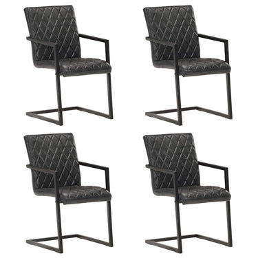 Chaises à manger cantilever lot de 4 noir cuir véritable