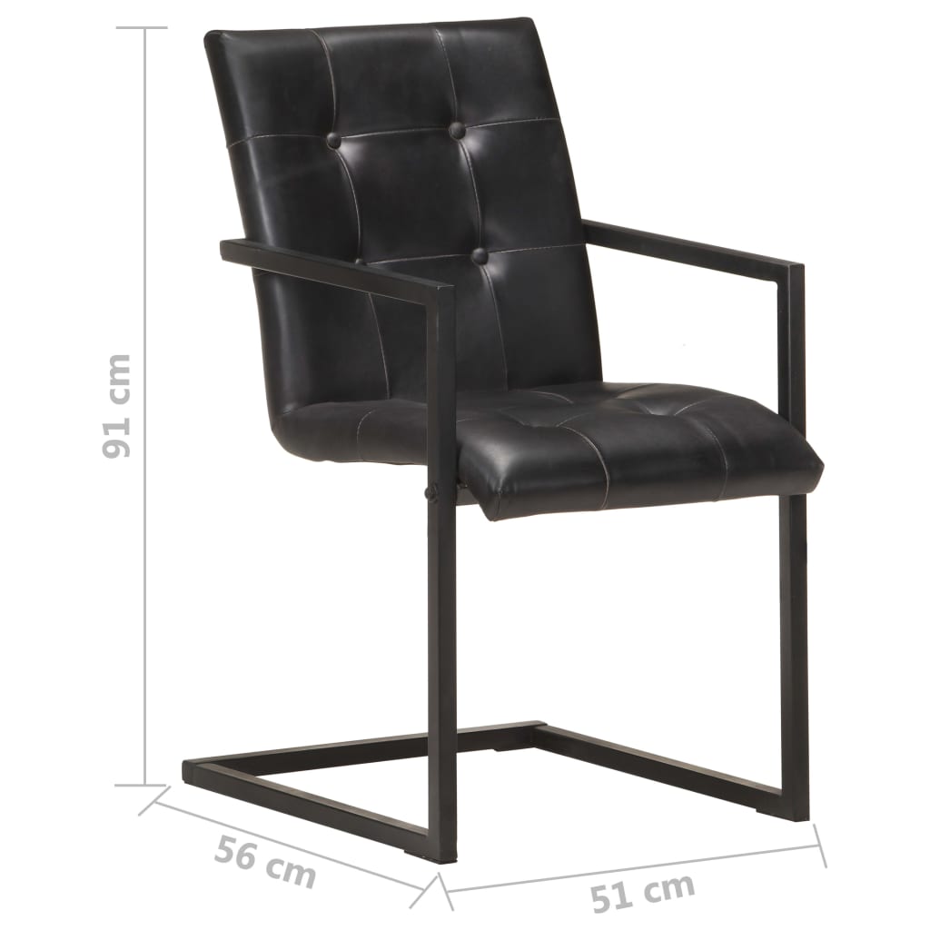Chaises à manger cantilever lot de 2 noir cuir véritable