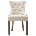 Ajoutez un look moderne et chaleureux à votre salle à manger ou à votre cuisine avec cet ensemble de chaises de salle à manger élégantes ! Avec la belle conception de bouton sur les dossiers, ces chaises de salle à manger sont conçues pour attirer l'attention. Les chaises de cuisine sont rembourrées en tissu doux, ce qui les rend confortables pour les utiliser. Les chaises vous apportent un confort de repos optimal, grâce aux sièges rembourrés et aux dossiers incurvés. De plus, les solides pieds en bois d'hévéa ajoutent une stabilité supplémentaire aux chaises de salle à manger, assurant une longue durée de vie.