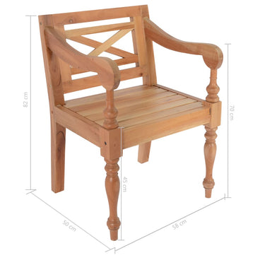 Notre ensemble de chaises Batavia combine parfaitement style et fonctionnalité et ajoutera une touche de classe à votre cuisine ou salle à manger. Il fera sensation dans n'importe quel espace de vie intérieur. Les chaises de salle à manger de haute qualité avec accoudoirs élégamment courbés sont en bois d'acajou solide, ce qui est très stable et durable. Elles sont robustes et faciles à nettoyer, assurant ainsi une longue durée de vie. Les fauteuils sont faciles à assembler. La livraison comprend 2 chaises Batavia.