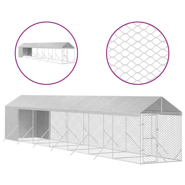 Chenil d'extérieur pour chiens avec toit argenté 2x10x2,5 m