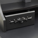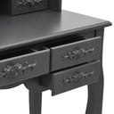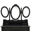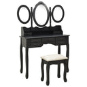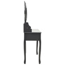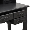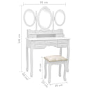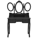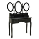 Notre ensemble de coiffeuse et de tabouret de maquillage est destiné à être un point de mire dans votre chambre à coucher. Les miroirs ont un cadre autoportant, et vous pouvez tourner les 2 miroirs latéraux à l'angle souhaité. Grâce aux 7 tiroirs, vous disposez d'un espace supplémentaire pour vos ornements, cosmétiques et autres effets personnels. La finition exquise est une caractéristique supplémentaire de cet ensemble de table et de tabouret. Cet ensemble de coiffeuse et de tabouret attire tous les regards dans n'importe quelle pièce.