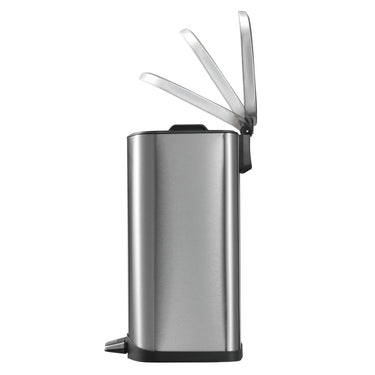 La poubelle à pédale Della argentée mate de la marque EKO est une poubelle admirablement conçue avec un seau intérieur en plastique de 35 L. C'est une solution de confinement des déchets idéale pour toute cuisine moderne, avec une poignée pratique à l'arrière. La poubelle à pédale est fabriquée en acier inoxydable brossé et possède un revêtement ingénieux résistant aux empreintes digitales. Elle est équipée d'un couvercle à fermeture silencieuse et d'une fonction de maintien du couvercle en position ouverte. Cette caractéristique verrouille le couvercle pour changer facilement le sac à déchets et/ou retirer le bac intérieur.