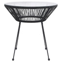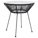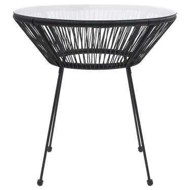 - Matériau : rotin PVC rond, verre trempé, acier enduit de poudre