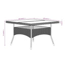 Cet ensemble élégant de salle à manger de jardin vous permet de passer des moments agréables et confortables avec votre famille et vos amis. Avec un cadre en acier enduit de poudre recouvert de résine tressée résistante aux intempéries avec protection UV, la table et les chaises sont durables et stables. Conçues avec un dossier et des accoudoirs incurvés, les chaises vous offrent du confort. Les coussins sont inclus pour plus de confort et la housse à fermeture éclair est amovible pour un lavage facile. Le dessus de table est en verre trempé renforcé avec un support résistant, facile à nettoyer et à entretenir. Les deux repose-pieds vous offrent également des places d'assise supplémentaires. De plus, la construction légère rend chaque pièce facile à déplacer, à réorganiser et à transporter. Remarque : afin de prolonger la durée de vie des meubles d'extérieur, nous vous recommandons de les protéger avec une housse imperméable.
