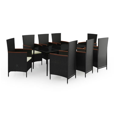 Cet élégant ensemble de salle à manger de jardin est destiné à être le point de mire de votre jardin ou patio ! C'est un excellent choix pour les repas en plein air ou pour vous détendre dans l'espace extérieur ! Les cadres en acier enduit de poudre rendent la table et les chaises robustes et stables pour une utilisation quotidienne à l'extérieur. Grâce à la résine tressée résistante à l'eau, les chaises sont faciles à nettoyer et résistantes à l'usure. Le dossier peut être ajusté en tirant sur le bouton sur le côté. Grâce à leur construction légère, elles sont faciles à déplacer. Les coussins de siège bien rembourrés ajoutent également un confort supplémentaire. Les housses en polyester nécessitant peu d'entretien peuvent être retirées et lavées. De plus, le dessus de table en verre lisse est facile à nettoyer avec un chiffon humide et parfait pour ranger des repas, des boissons et d'autres articles décoratifs. Remarque : afin de prolonger la durée de vie des meubles d'extérieur, nous vous recommandons de les protéger avec une housse imperméable.