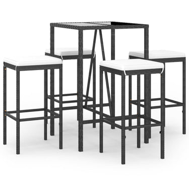 Ensemble de bar de jardin 5 pcs avec coussins noir poly rotin