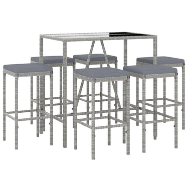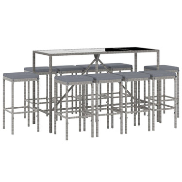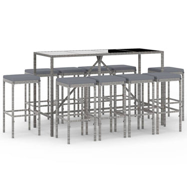 Ensemble de bar de jardin 9 pcs avec coussins gris poly rotin