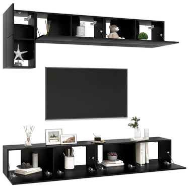 Ensemble de meuble TV 5 pcs Noir Bois d'ingénierie