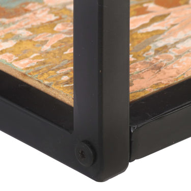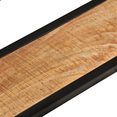 - Matériau : bois de manguier brut avec une finition naturelle, fer avec revêtement en poudre noire
