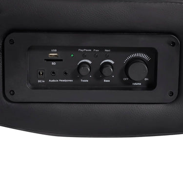 Ce fauteuil à bascule en cuir artificiel est une place assise très confortable pour discuter, lire, regarder la télévision ou tout simplement se détendre. Cette chaise à bascule noir est faite de cuir synthétique facile à nettoyer avec un rembourrage doux et très résistant, tandis que le maillage de tissu respirant sur le dos ajoute à son confort d'assise. Son système intégré de lecture de musique avec 2 / 3D haut-parleurs numériques sur les épaules et le dos offrira une expérience musicale vraiment immersive. Avec la rotation des boutons pour contrôler les aigus, les graves et le volume, vous pouvez régler le son à votre préférence. Ce fauteuil à bascule en cuir synthétique peut également être utilisé avec un casque. Les câbles USB et les câbles du casque peuvent être bien rangés dans la petite poche sur le côté droit de cette chaise.