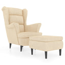 Fauteuil à oreilles avec tabouret crème velours